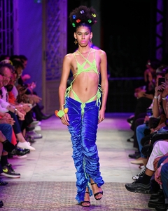 Calça cintura baixa drapeada com amarrações na parte interna da calça criando um visual único